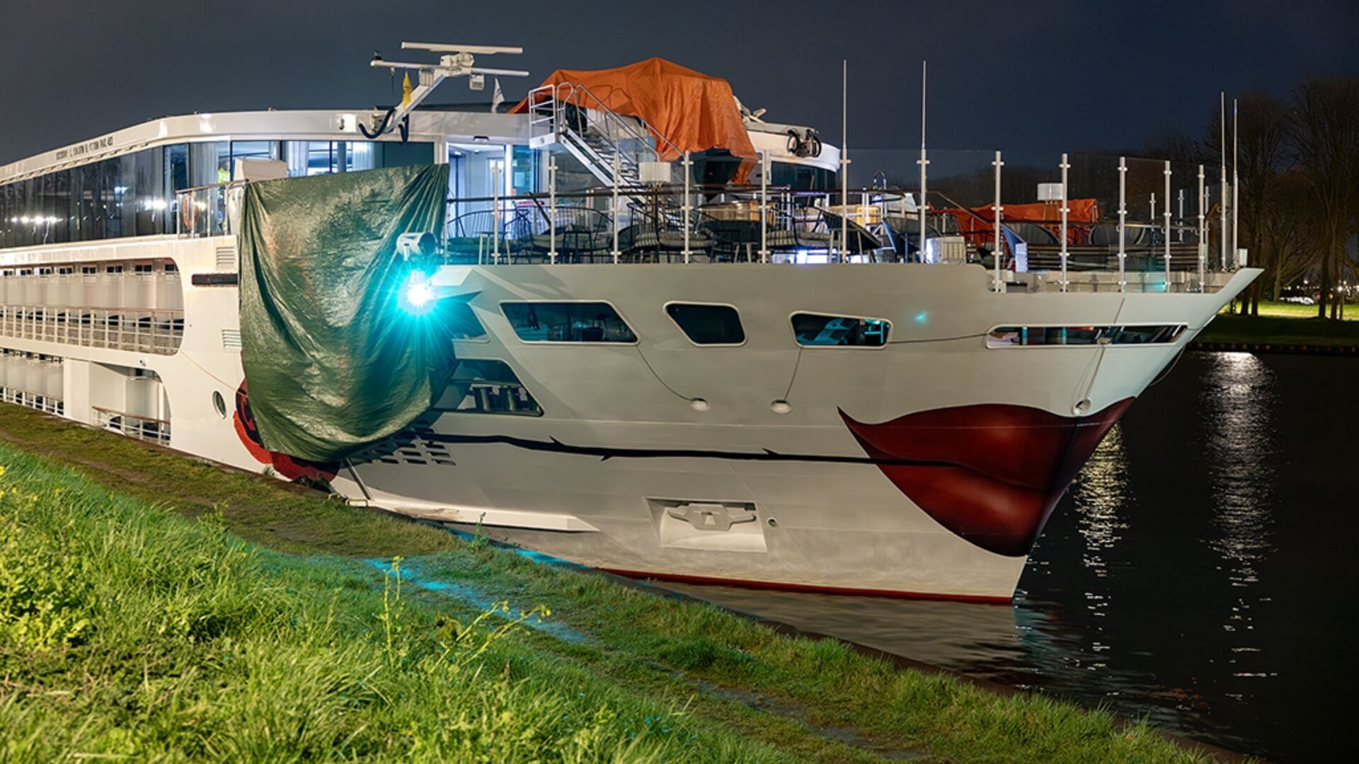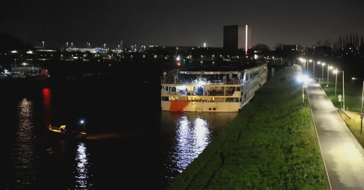 Riviercruiseschip vaart tegen Amsterdamsebrug: schipper gewond, 280 passagiers van boord gehaald