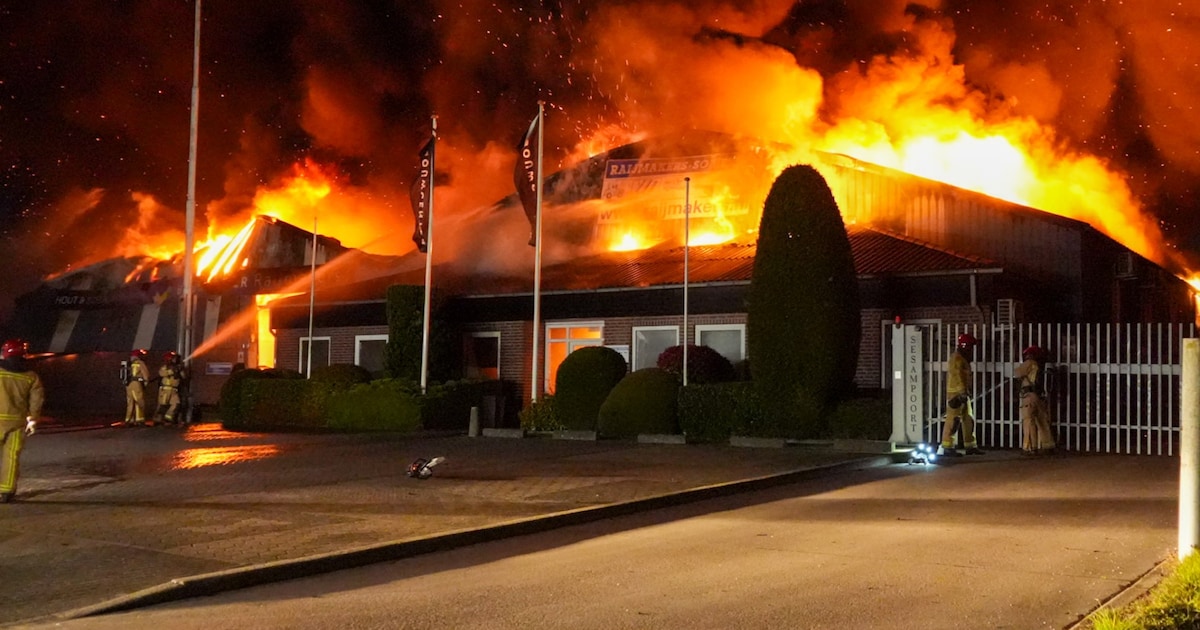 VIDEO Loodsen van familiebedrijf gaan verloren bij grote brand in Someren: ‘Het stond meteen in brand. Alles is weg’