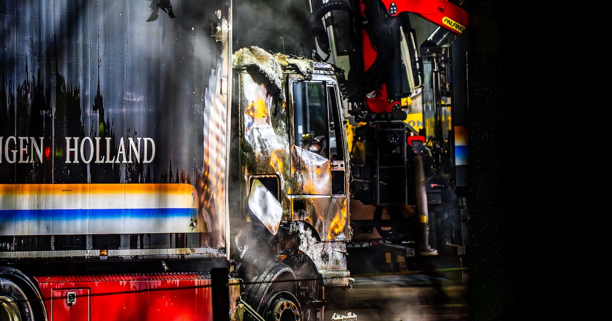 Cabine van vrachtwagen uitgebrand op parkeerplaats in Beuningen