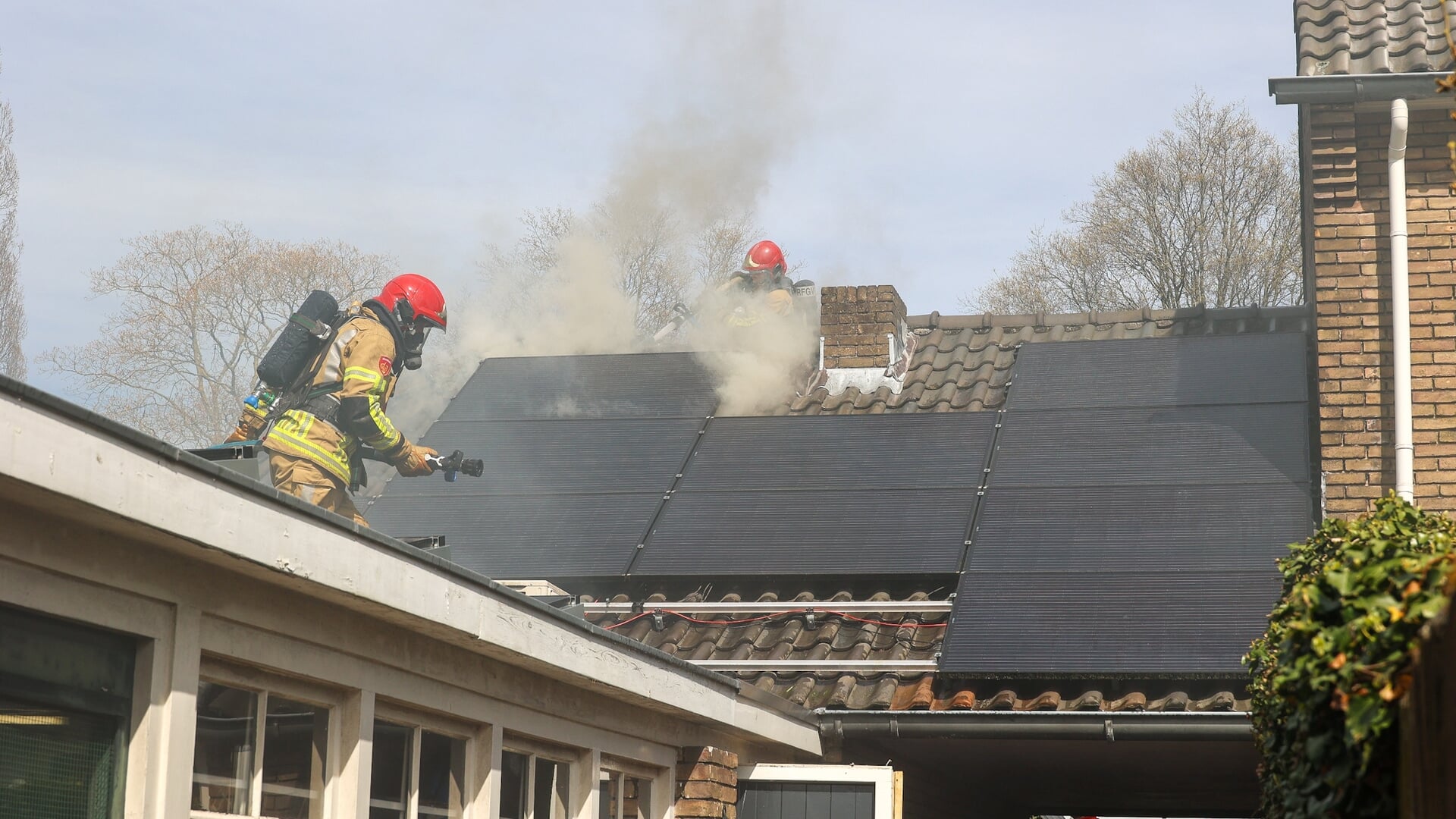 Brand in aanbouw woning, mogelijk ontstaan bij zonnepanelen