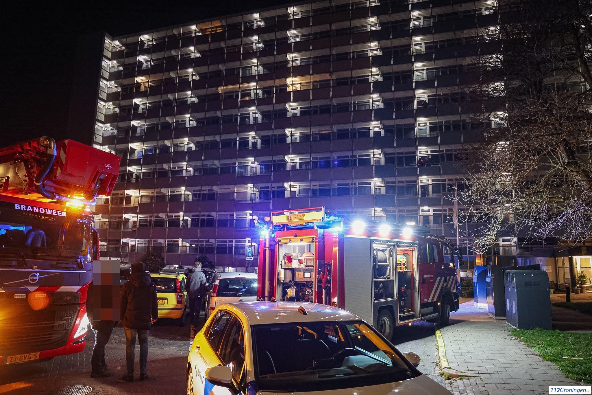 Brand op tiende etage flat in Hoogezand, politie pakt man op