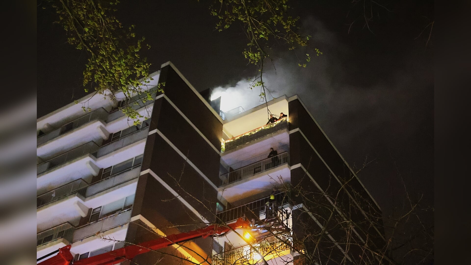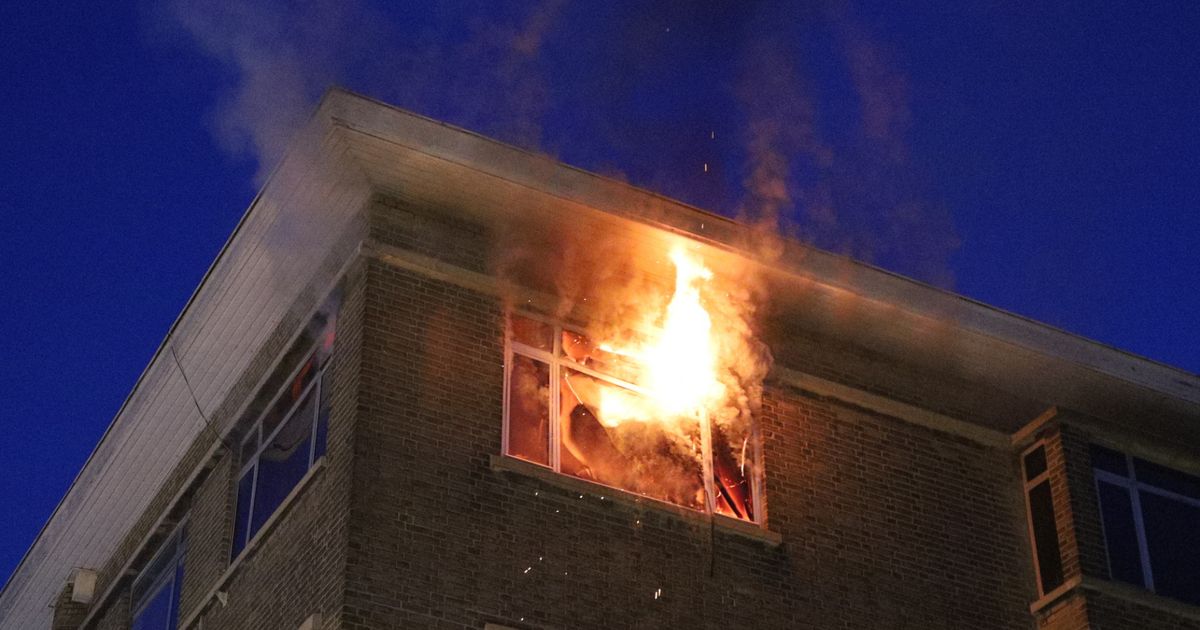 Bewoners van balkons gehaald bij grote brand in liftschacht flat Kersengaarde