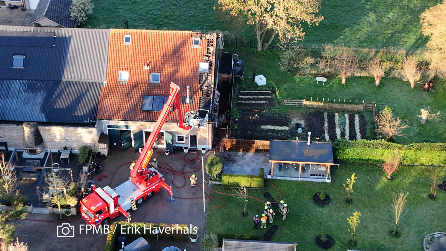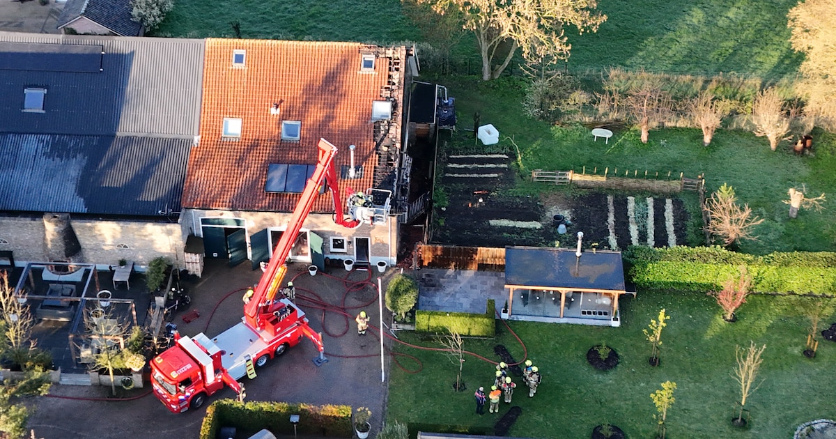 Gevel en dak deels verwoest bij brand in boerderij in Genderen, aangrenzende woningen blijven gespaard