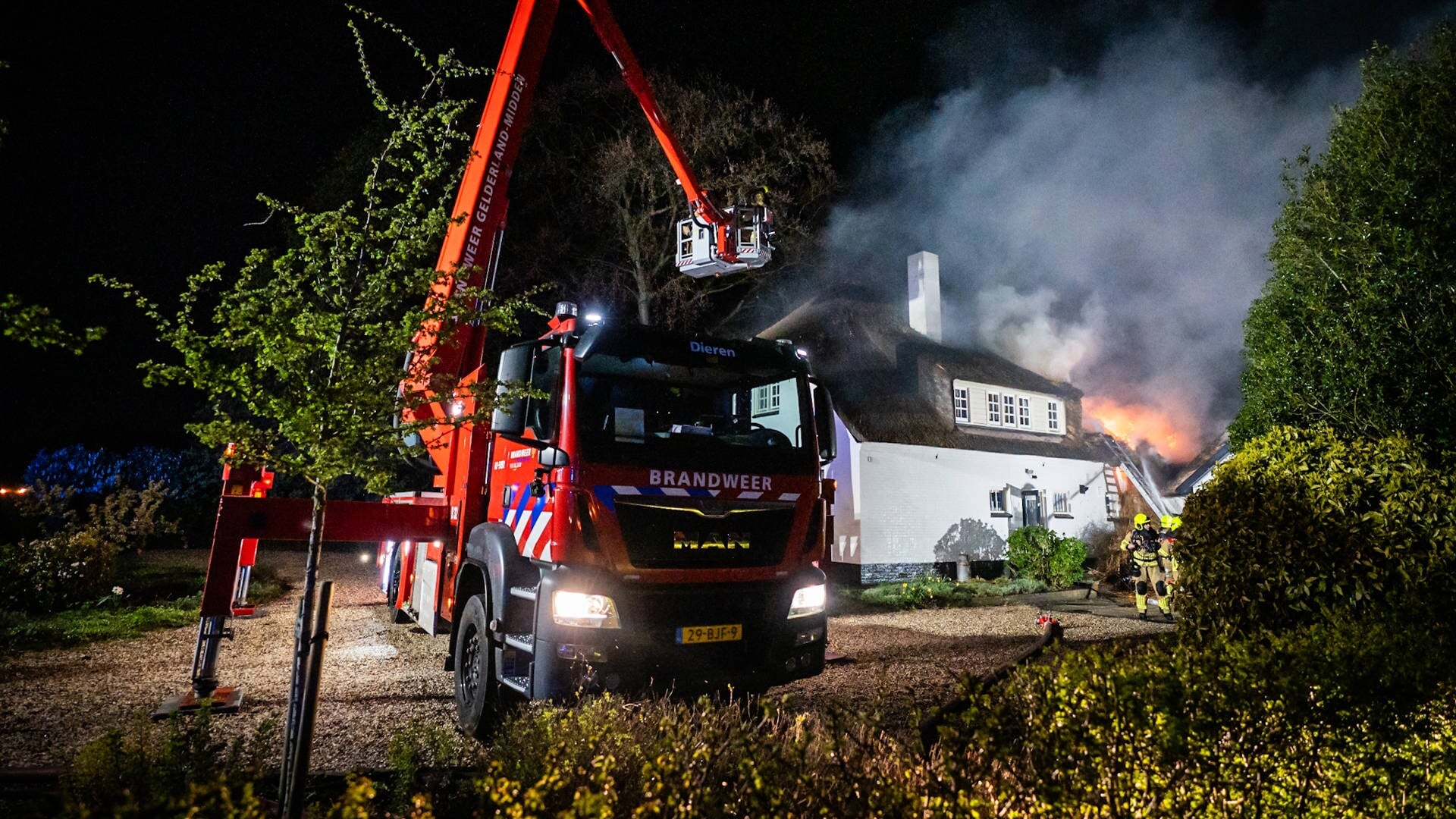 ‘Bliksem slaat in’: grote brand in woning met rieten dak in Doesburg