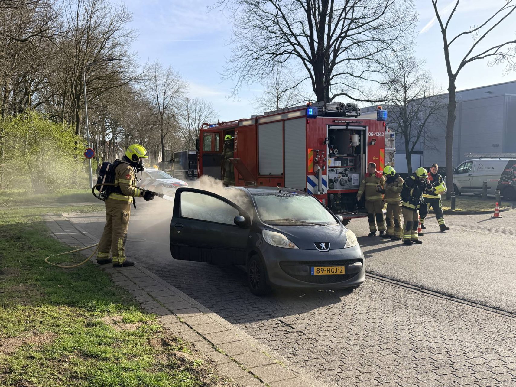 Auto vliegt in brand naast de brandweerkazerne