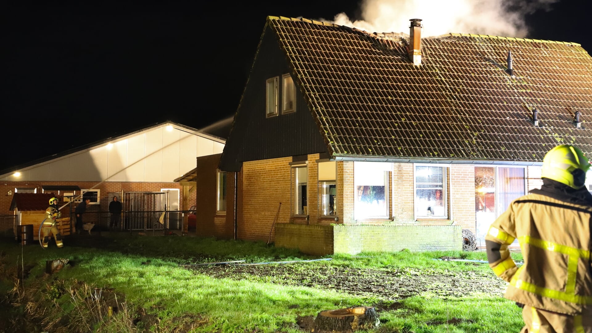 Bewoners moeten huis uit in Kamperveen, brand woedt in dak van woning