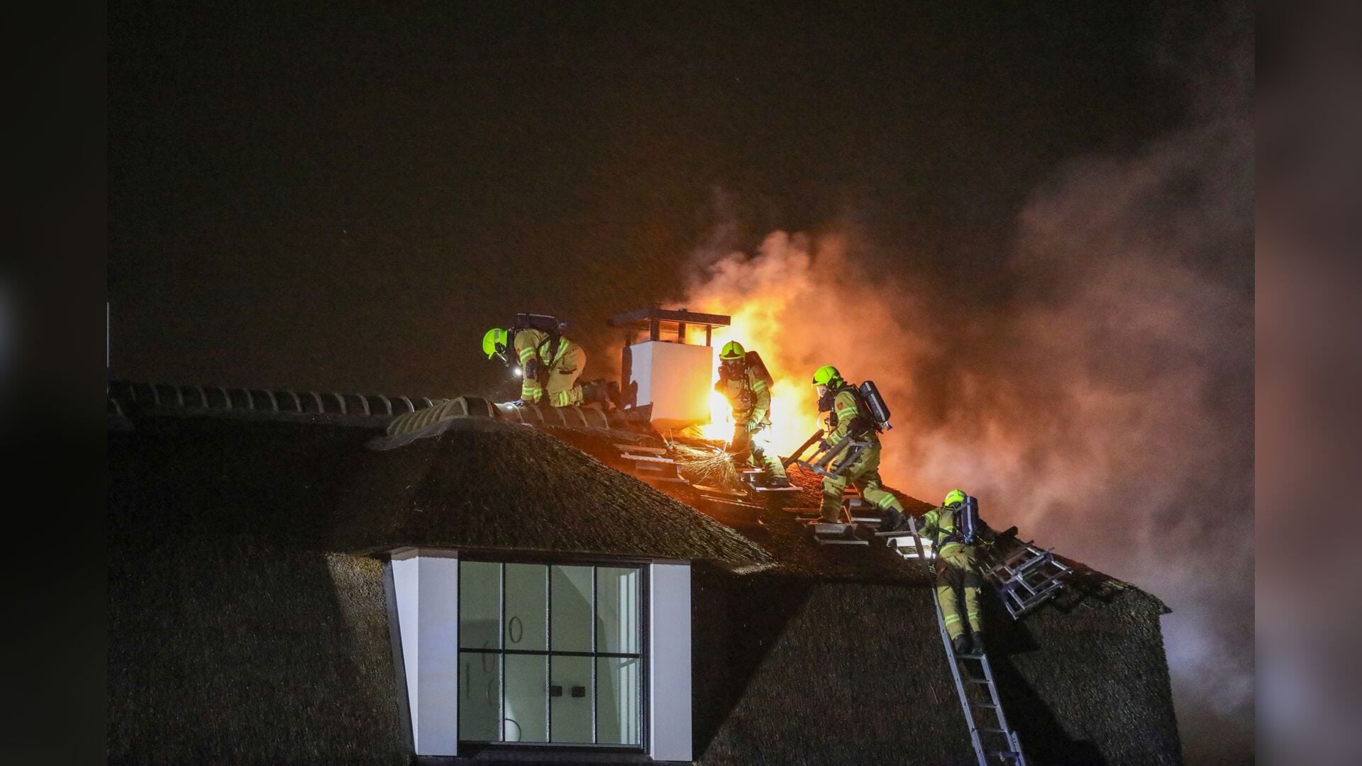 Blikseminslag zorgt voor uitslaande brand op rieten dak in Barneveld