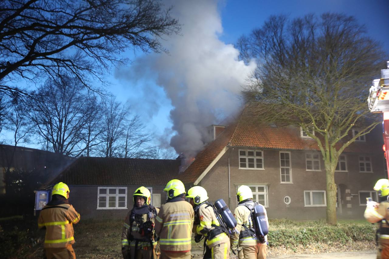 Grote brand slaat door naar dak van woning in Apeldoorn