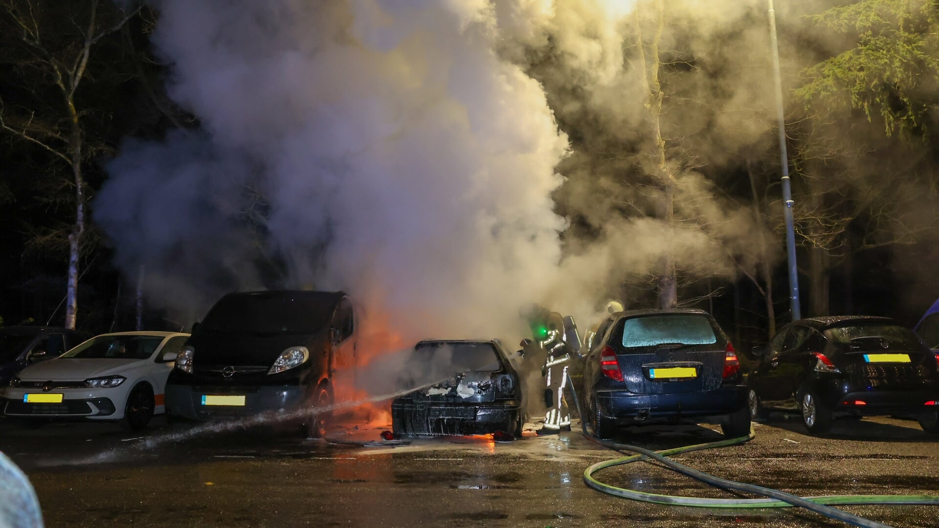 Drie auto’s total loss na brand op parkeerdek Laan van Vollenhove
