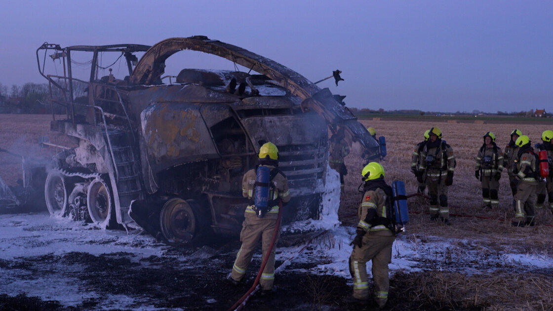 Landbouwmachine brandt uit in Aardenburg, diesel komt in sloot terecht